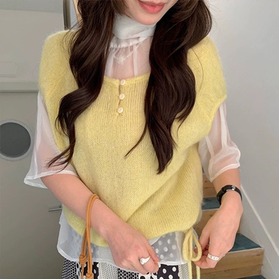 - on.[NT736]버튼스트링반팔니트