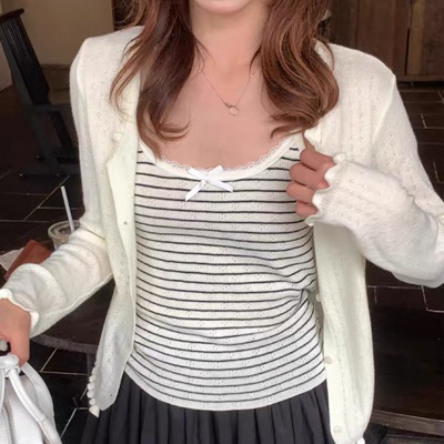 - on.[CD633]펀칭가디건스트라이프나시세트
